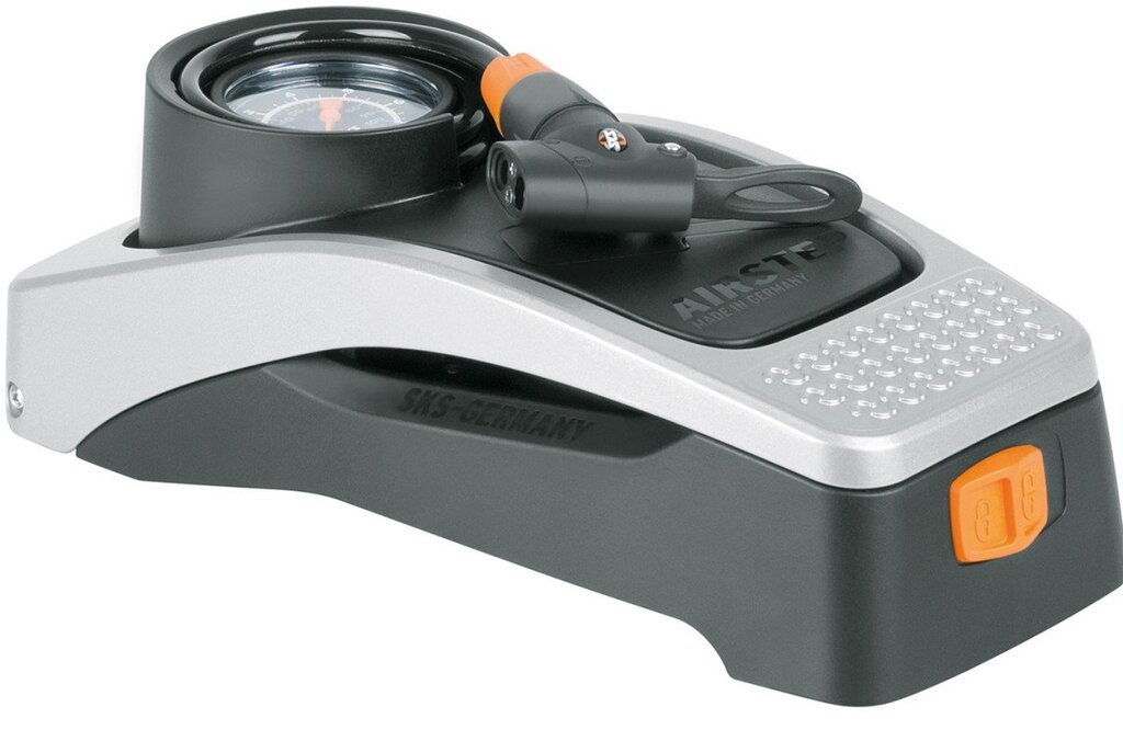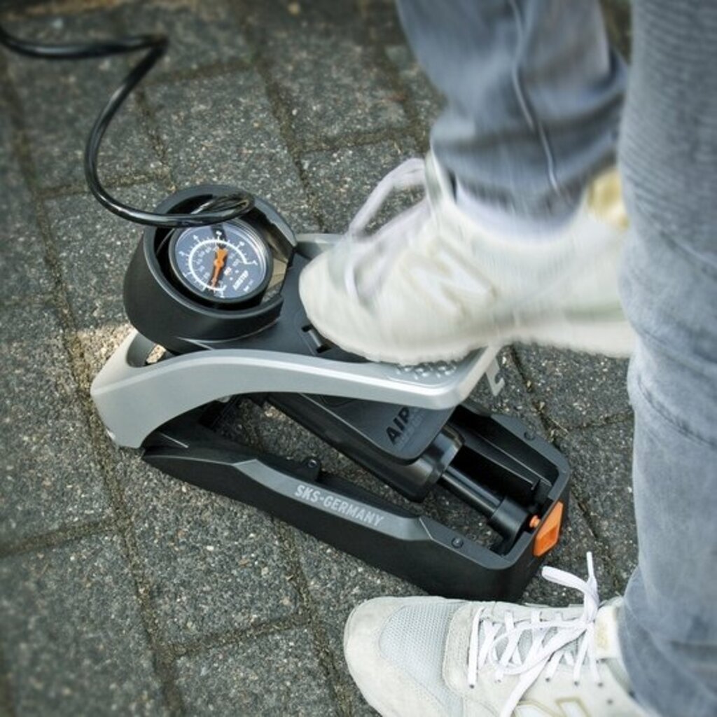 Een fietsband met je voet oppompen is veel minder belastend voor je lichaam dan met de handen. AIRSTEP is een innovatieve voetpomp, ontwikkeld in samenwerking met SQlab en daarmee ergonomisch verantwoord ontworpen. De voetpomp kan voor elke fietsband druk opbouwen tot 7 bar/ 102 psi. Dat gaat heel gebruiksvriendelijk, met een grote manometer, een geïntegreerde opslagruimte voor de spiraalslang en een multivalve ventielkop, geschikt voor alle typen ventielen. Pompen gaat via een robuust, ergonomisch gevormd aluminium voetpedaal, dat na gebruik wordt ingeklapt. De AIRSTEP is daarmee een compacte fietspomp die met opgerolde slang ruimtebesparend aan een muurbeugel kan hangen. Alle materialen zijn van SKS Germany kwaliteit, met 5 jaar fabrieksgarantie. De AIRSTEP maakt pompen gemakkelijker dan ooit.